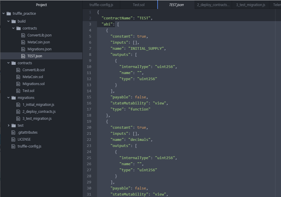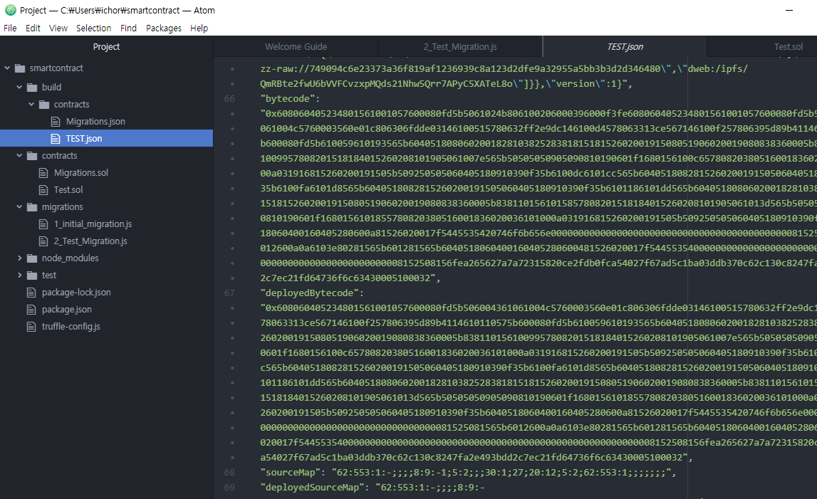 ATOM 에디터 TEST.json 파일에서 "abi": 오른쪽 [ 부터~ ] 까지 복사, 붙여넣기 합니다.