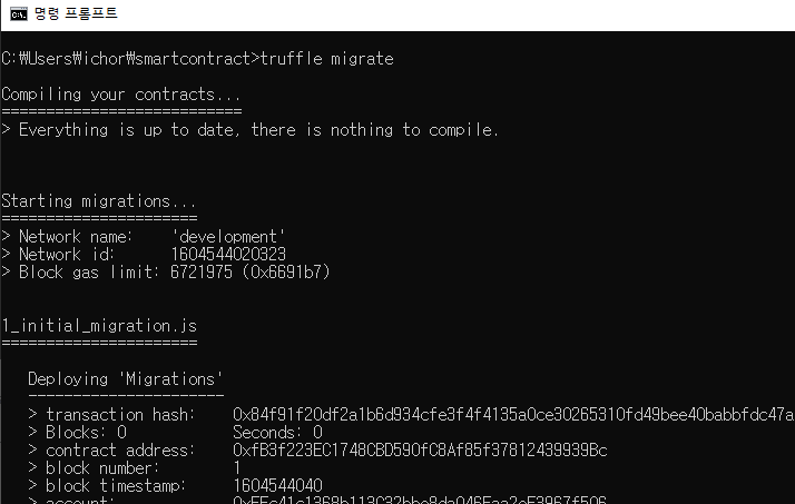 - mgrations : contracts 폴더에서 작업한 코드를 블록체인에 deploy하기 위한 코드