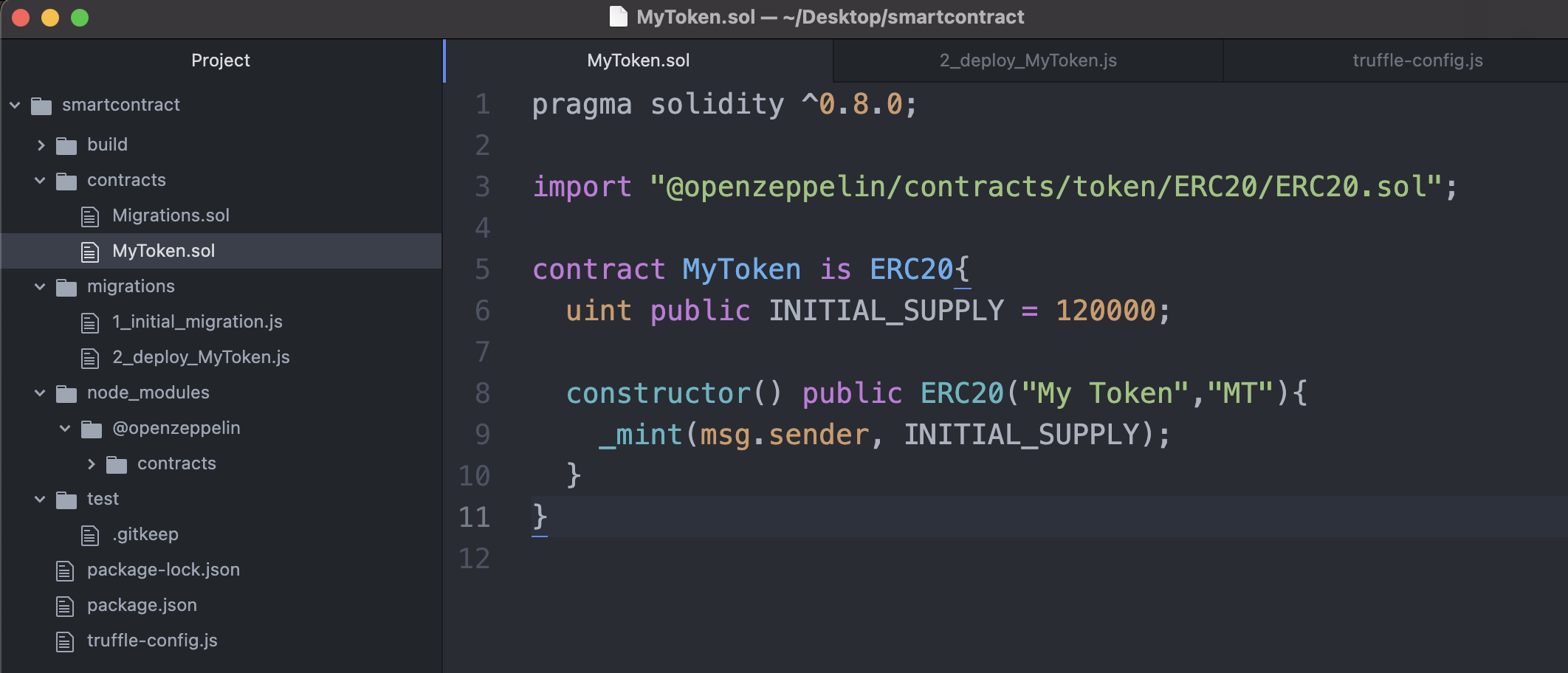 1. MyToken.sol 파일을 새롭게 작성합니다.