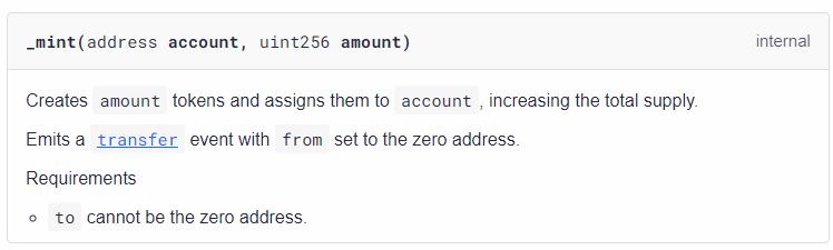 그리고 위 코드에서는 ERC20 컨트랙트에 정의된 _mint() 함수를 사용했습니다.