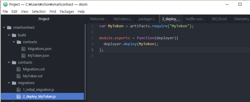 migrations 폴더안에 2_deploy_Mytoken.js 을 아래와 같이 작성합니다.