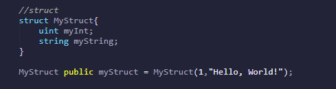 예를 들어 직원정보, 학교의 학생정보, 수강생정보 등을 저장하고자 할때 다양한 정보를 이 구조체를 사용하여 표현할 수 있습니다. 솔리디티에서는 위와 같은 형태로 선언하고 사용을 아래와 같이 합니다.