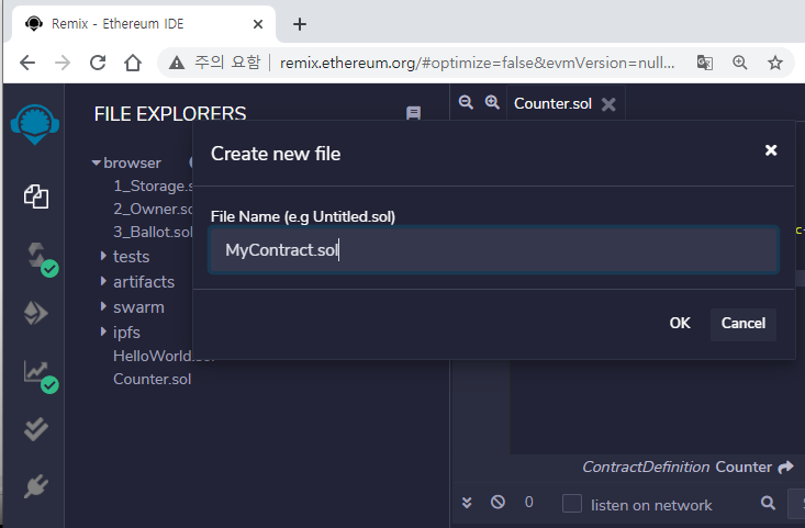 먼저 MyContract.sol 파일을 만듭니다.