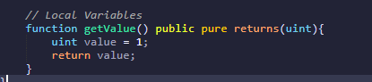 - pure : pure 함수는 읽고 쓰지 못함, 상태변수에 접근이 불가능함. 즉 함수가 현재 상태와 거래변수에 접근을 못하게 하려면 이 식별자를 사용