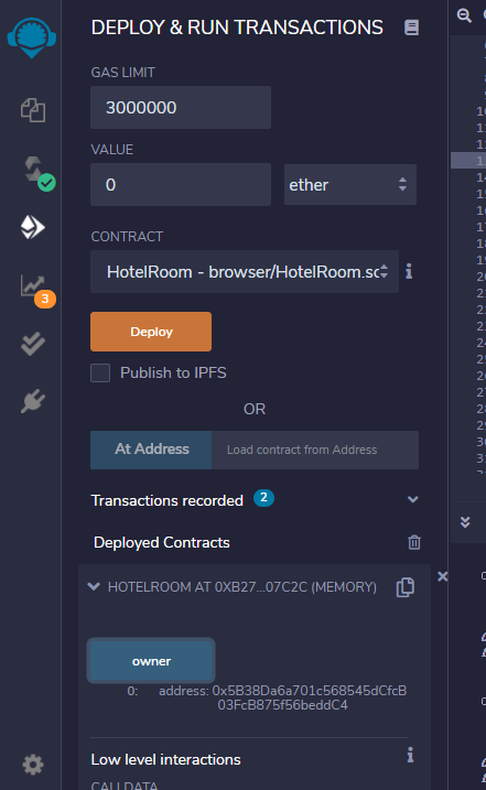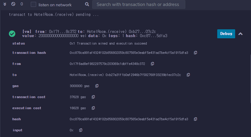 아래에 Transact 클릭하면, 오른쪽에 Not enough Ether provided를 확인할 수 있습니다.