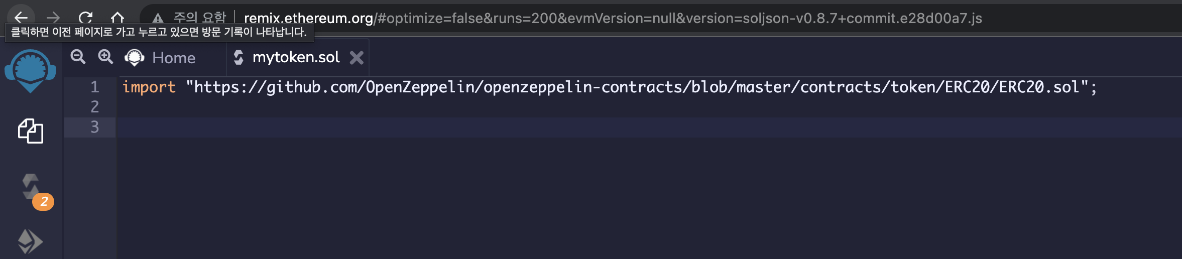 1. 리믹스에서 mytoke.sol 파일을 생성합니다.