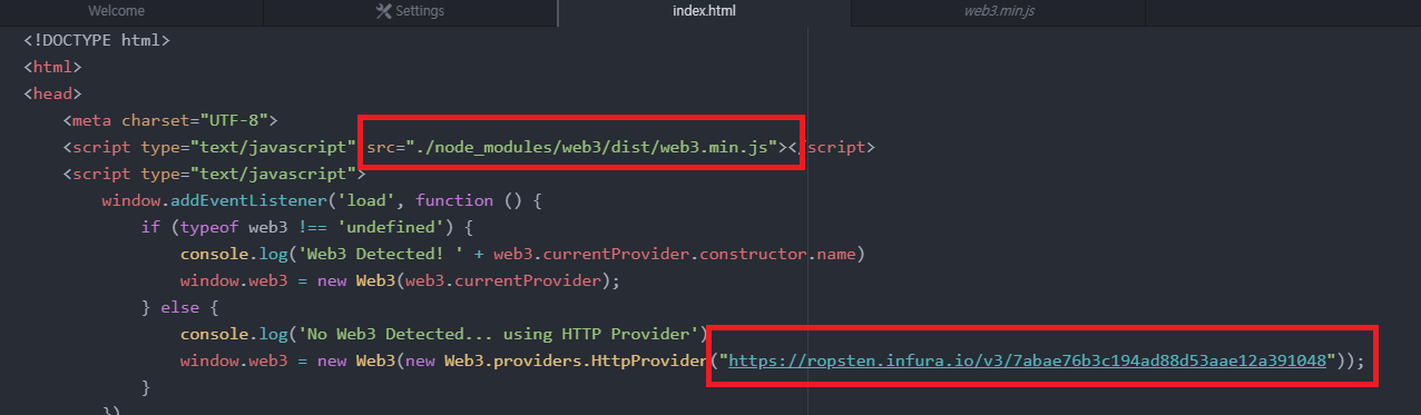 <script type="text/javascript" src="./web3.min.js"></script>