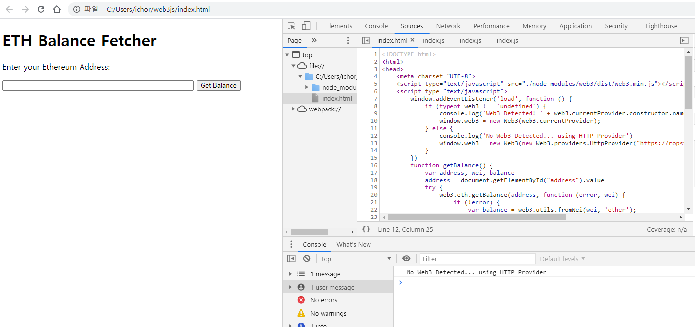 3. index.html 파일을 생성하여 이더를 조회하는 웹페이지를 만듭니다.
