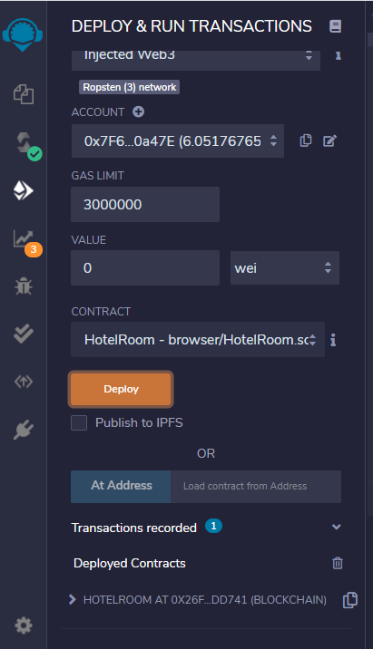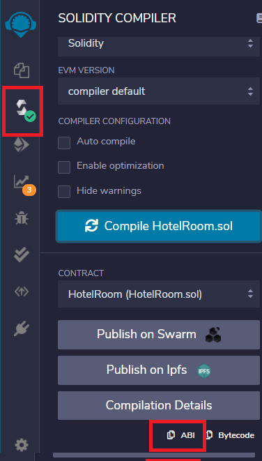 이전 솔리디티 시간에 배운 hotel 예약 관련 컨트랙트를 컴파일 하고 배포합니다.