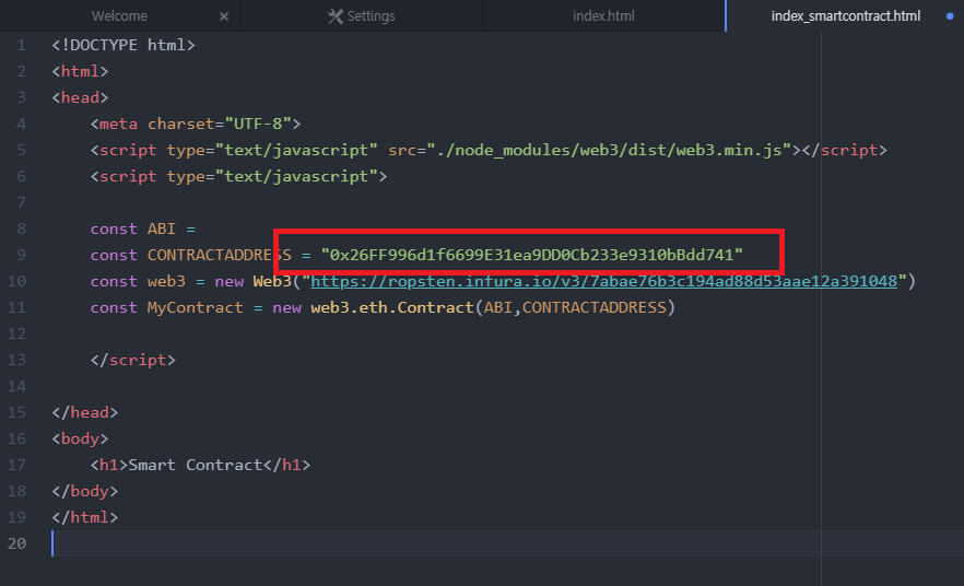 이걸 가져와서 아래에 ABI 부분에 붙여넣기 합니다.