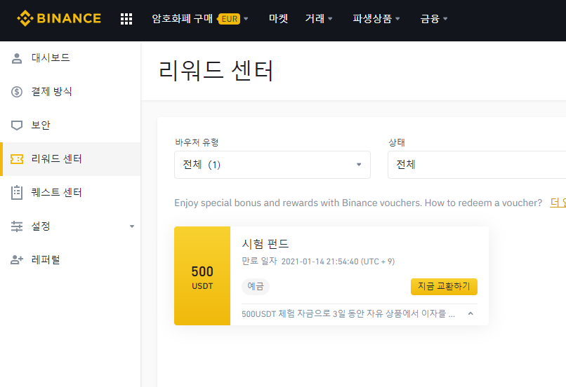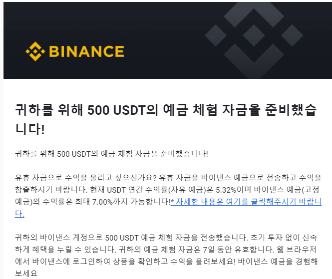 바이낸스에서 500USDT의 예금체험자금을 준비했다는 메일을 받았습니다!!