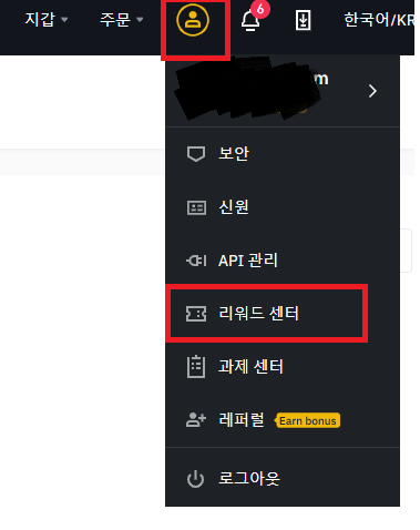 1) 오른쪽 메뉴에서 리워드 센터 클릭