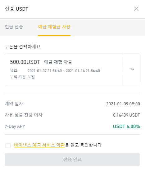 500USDT를 일시적으로 주고 그걸 예금상품에 사용해서 이자를 받을 수 있다고 하는내용입니다.