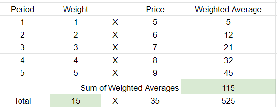WMA = (Sum of Weighted Averages) / (Sum of Weight)