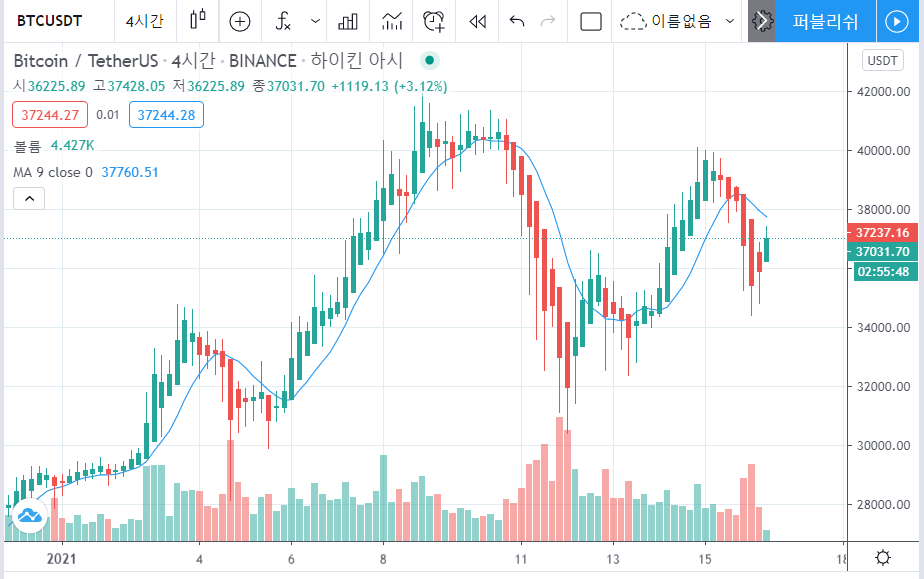 3. 4시간 기준 BTC 이동평균이동선 예시)