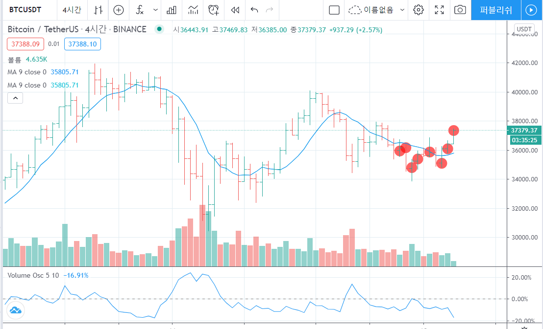 [최소 몇일간은 상승세일것임을 예상해볼 수 있음]