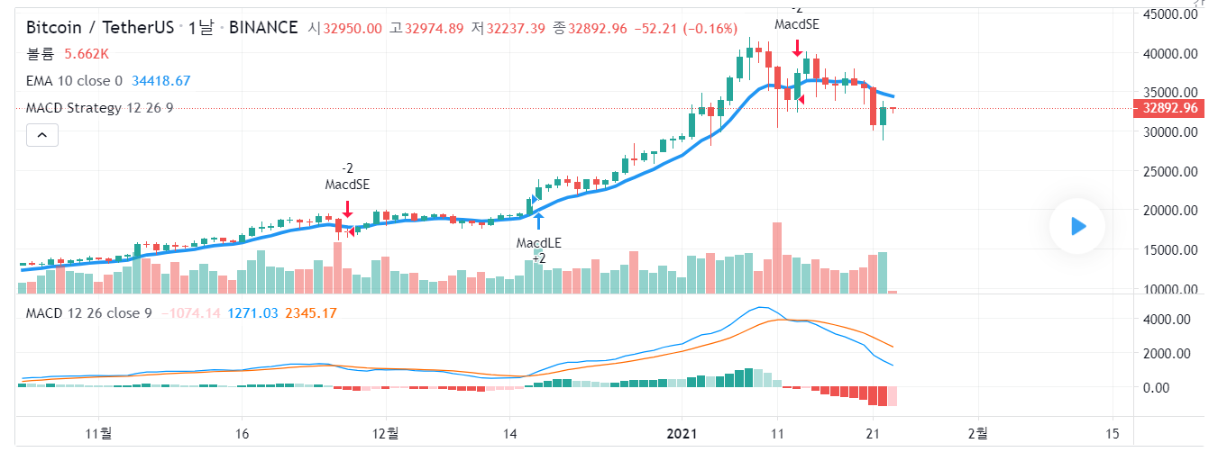 MACD에서 교차가 발생하는 지점이 롱,숏의 포지션이 전환되는 지점입니다.