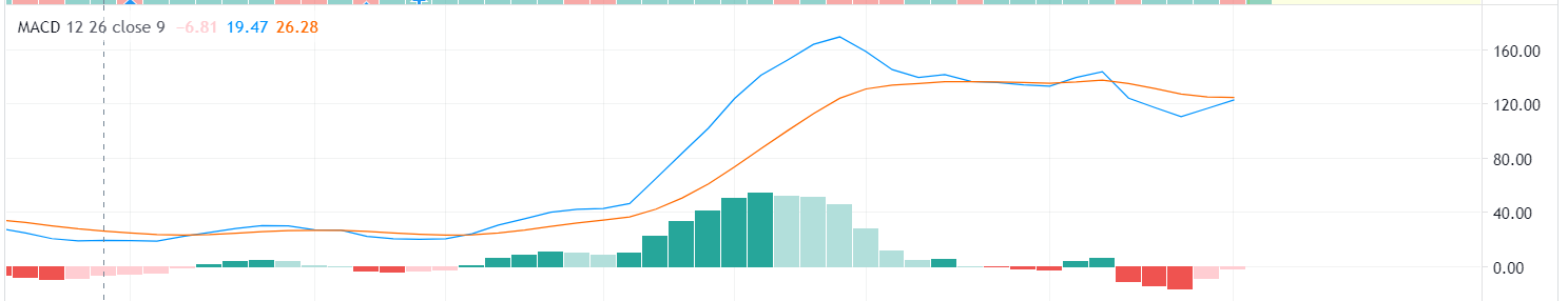 - MACD 일봉기준으로 교차가 발생한 지점에서 여전히 상승추세임
