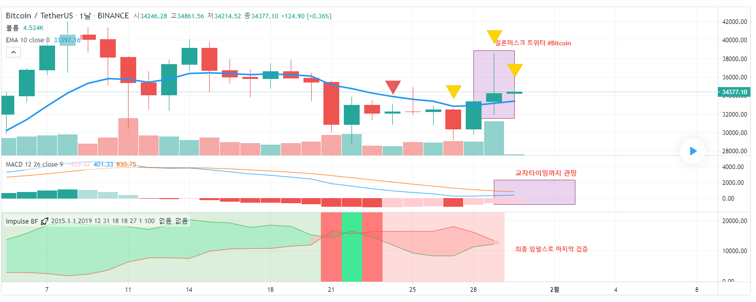 임펄스가 안정적인 신호를 보낼때가 조금 더 안정적인 비트코인 매수시점이 아닐까 생각해서 조금 더 관망을 해보려고 합니다.