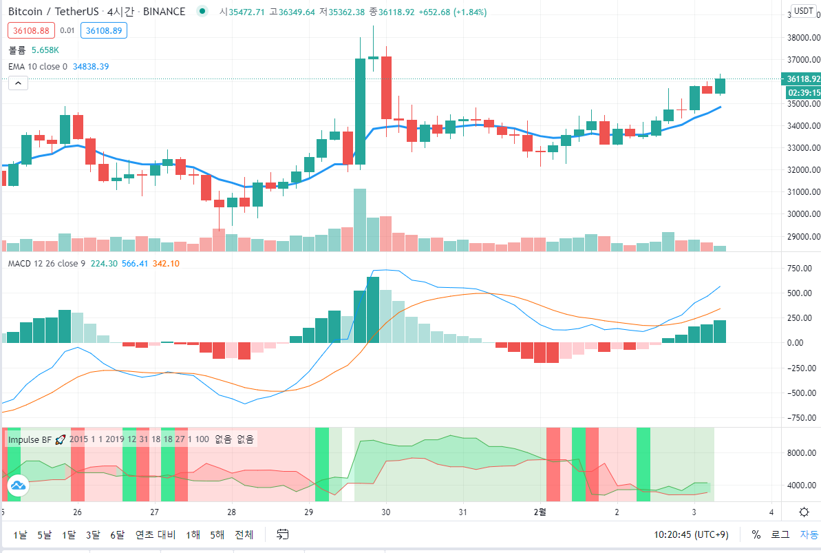 3. 4시간봉 기준, MACD 단기상승전환, 임펄스 기준 매수 허용