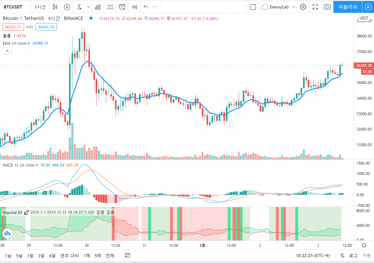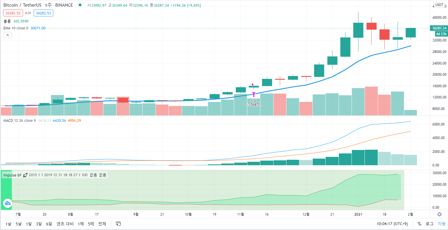 1. 주봉기준 EMA 및 MACD 확인. Impulse까지 최종검증