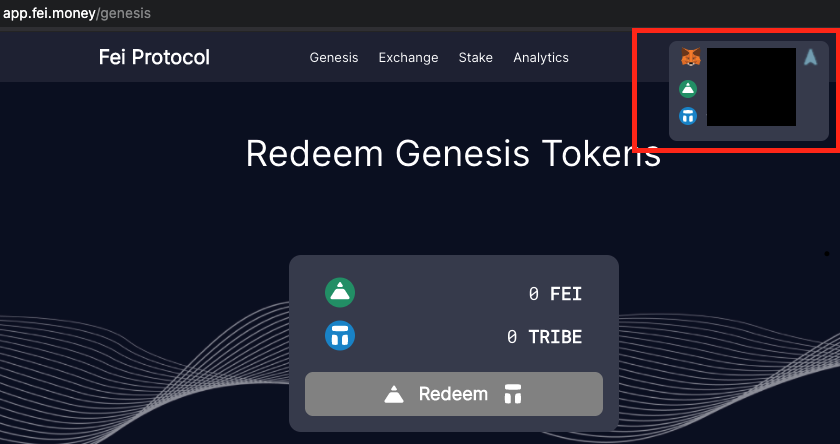 Fei interface의 탭에서 Genesis 토큰을 Redeem(교환) 하세요!