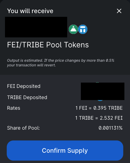 아래 사이트에서 Fei와 tribe를 가지고 Uniswap LP를 신청합니다.