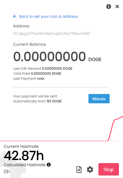 아래와 같이 현재 해시율이 나오고 도지코인 채굴양이 표시됩니다.