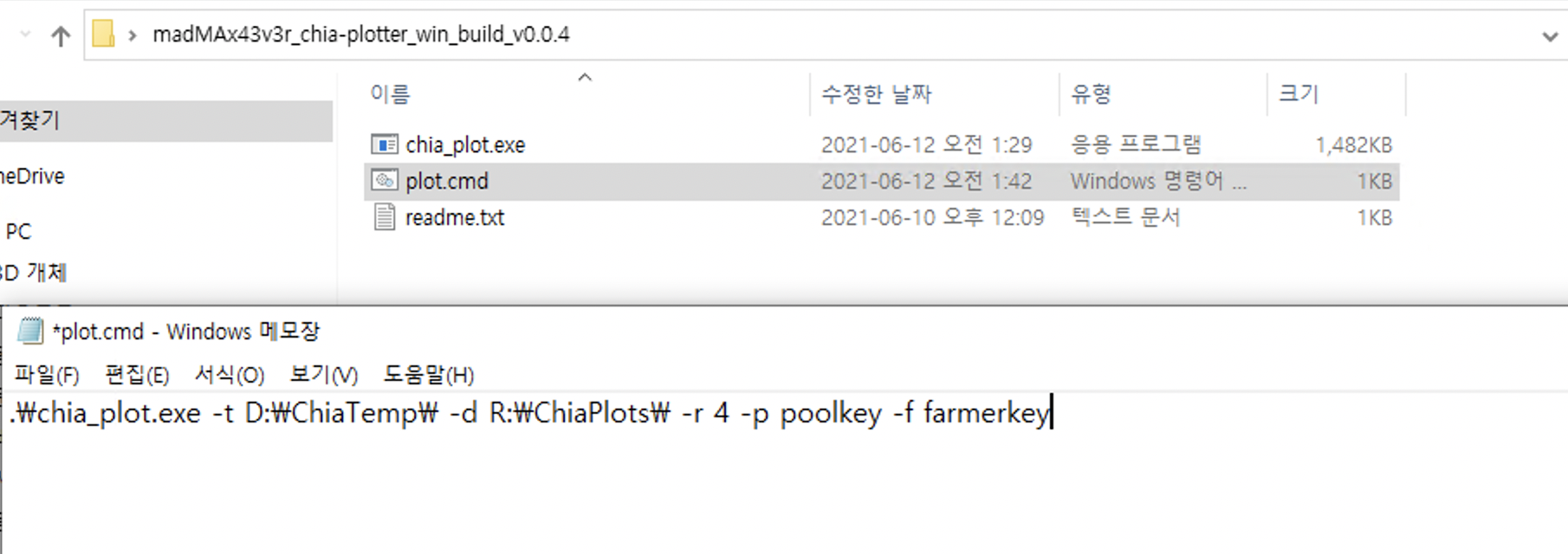 위 Plot.cmd 파일을 실행하기 전에 poolkey와 farmerkey를 알아야 합니다.