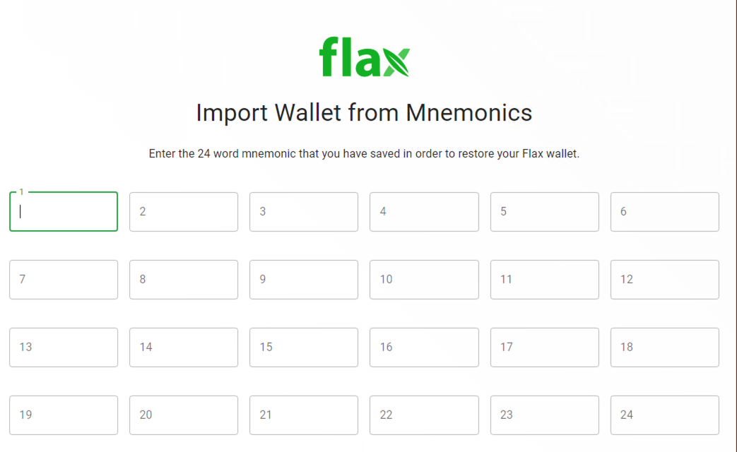 2. 설치 및 실행 후 치아 니모닉키를 가져와서 Flax에 넣습니다.