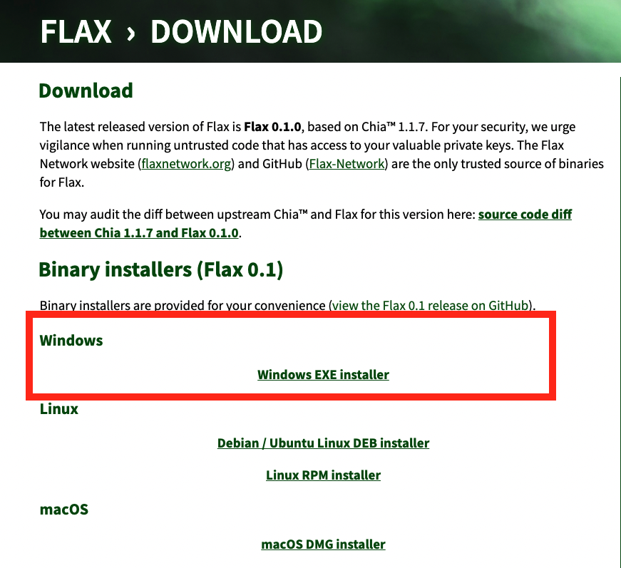Download The latest released version of Flax is Flax 0.1.0, based on Chia™ 1.1.7. For your security, we urge vigilance when running untrusted code that has access to your valuable private keys. The Flax Network website (flaxnetwork.org) and GitHub (Flax-