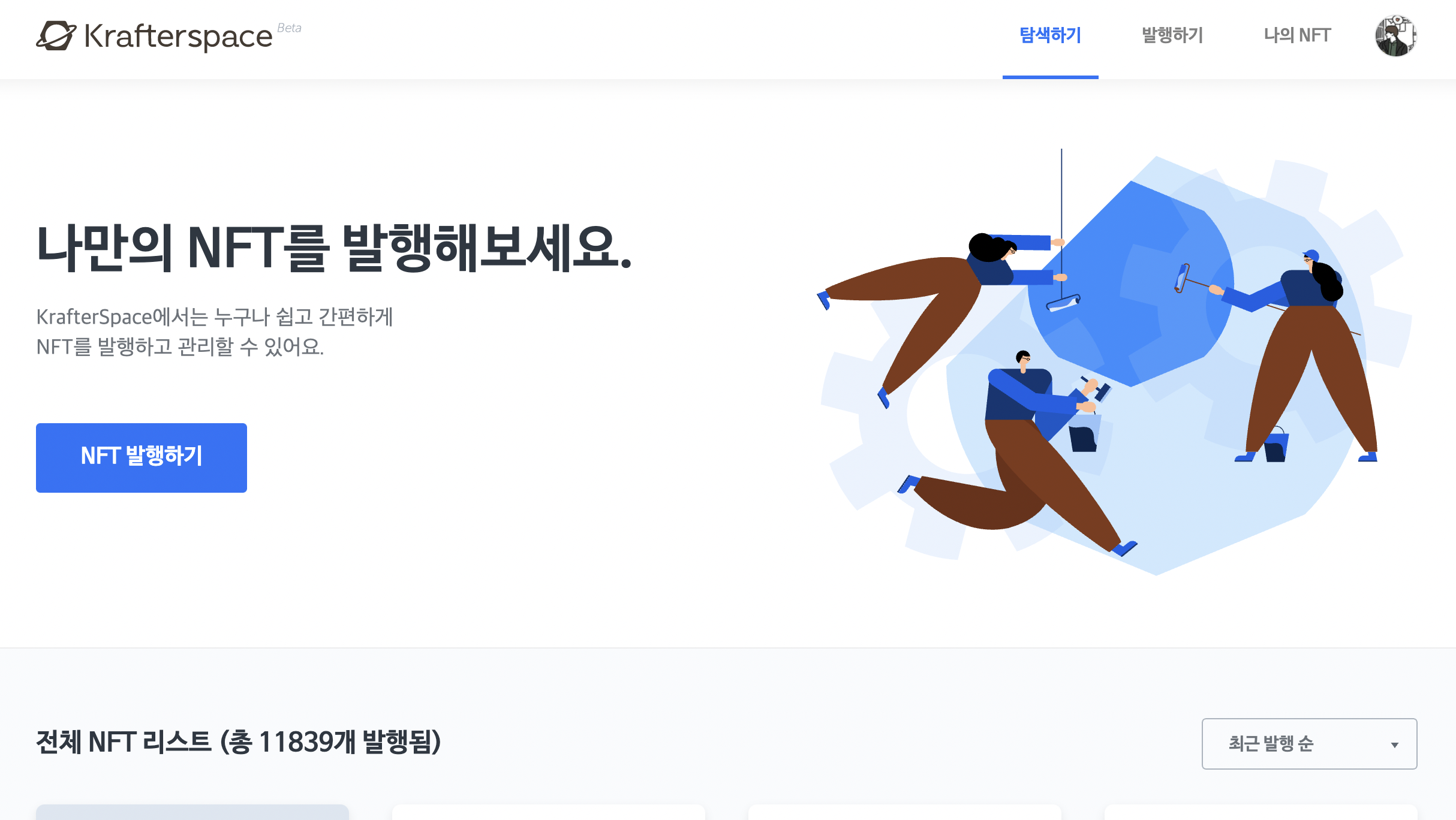 아래의 krafterSpace에 자신의 NFT 작품을 등록합니다.
