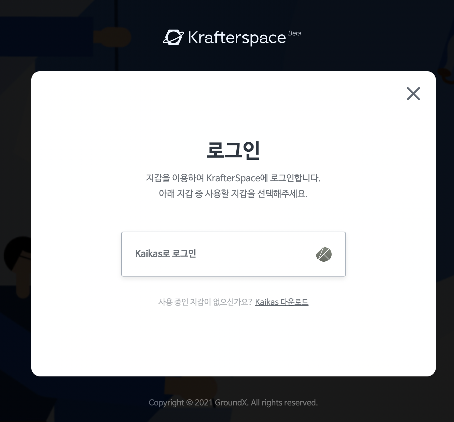 2.2 설치된 Kaikas로 로그인을 클릭해줍니다.