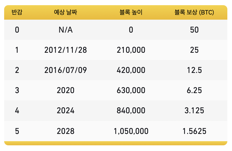 비트코인은 총 발행량이 2,100만개로 정해져있다. (그정돈 나도 알어..) 그래서 양적완화와 같은..아..말이 어려워졌다. 달러를 마구찍어대는것..과 같은 달러화에 대비해서 비트코인 가치를 주장하는 많은 사람들이 이 발행량에 가치를 둔다. 개인적으로는 이 발행량과 가치에 대해선 중립적이긴 한데..어쨋건 비트코인은 이렇게 2,100만개라는 발행량이 있다. 그리고 이 발행량은 오직 채굴자들에게만 준다. 즉, 100% 채굴참여자들에게 나눠주고 유통해주는 방식을 선택한거다. 그런데 이 유통에 있어서 계획이 있었는데 그 유통량을 처음에 많이 분배하고 조금씩 줄여가자!!! 라는게 사토시의 계획이었다.