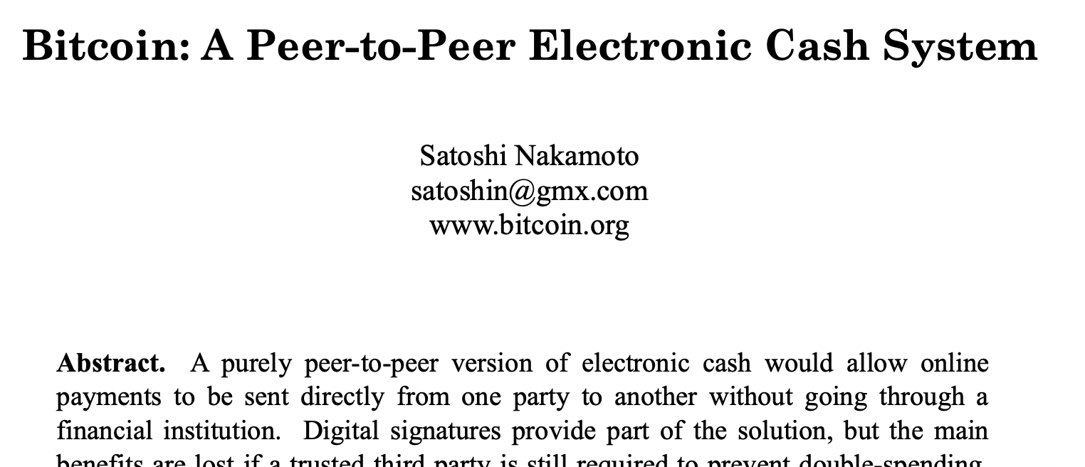 자, 제목을 한번 보자. Bitcoin : A Peer-to-Peer Electronic Cash System 이다. 사실 글이든, 영화든, 논문이든 제목은 상당히 중요하다 그 전체 글이 담고 있는 걸 함축적으로 표현해야 하기 때문인데, 비트코인의 제목을 우리가 조금 깊이 있게 살펴봐야 할 이유도 여기에 있다. 비트코인 : 피어 투 피어 방식의 전자화폐 시스템이라고 제목이 되어 있다. 앞은 모르더라도 뒤는 누구나 이해할 수 있다.