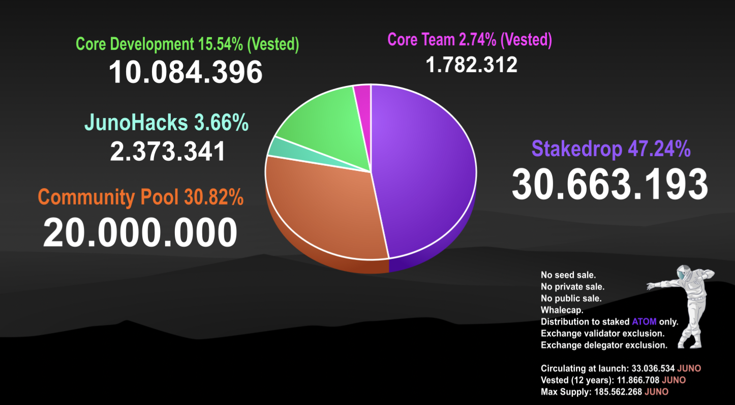 ✅ Maximum Supply[최대 공급량] (Reached in 12 years/year 2033): 185,562,268 $JUNO (2033년까지 공급됨)