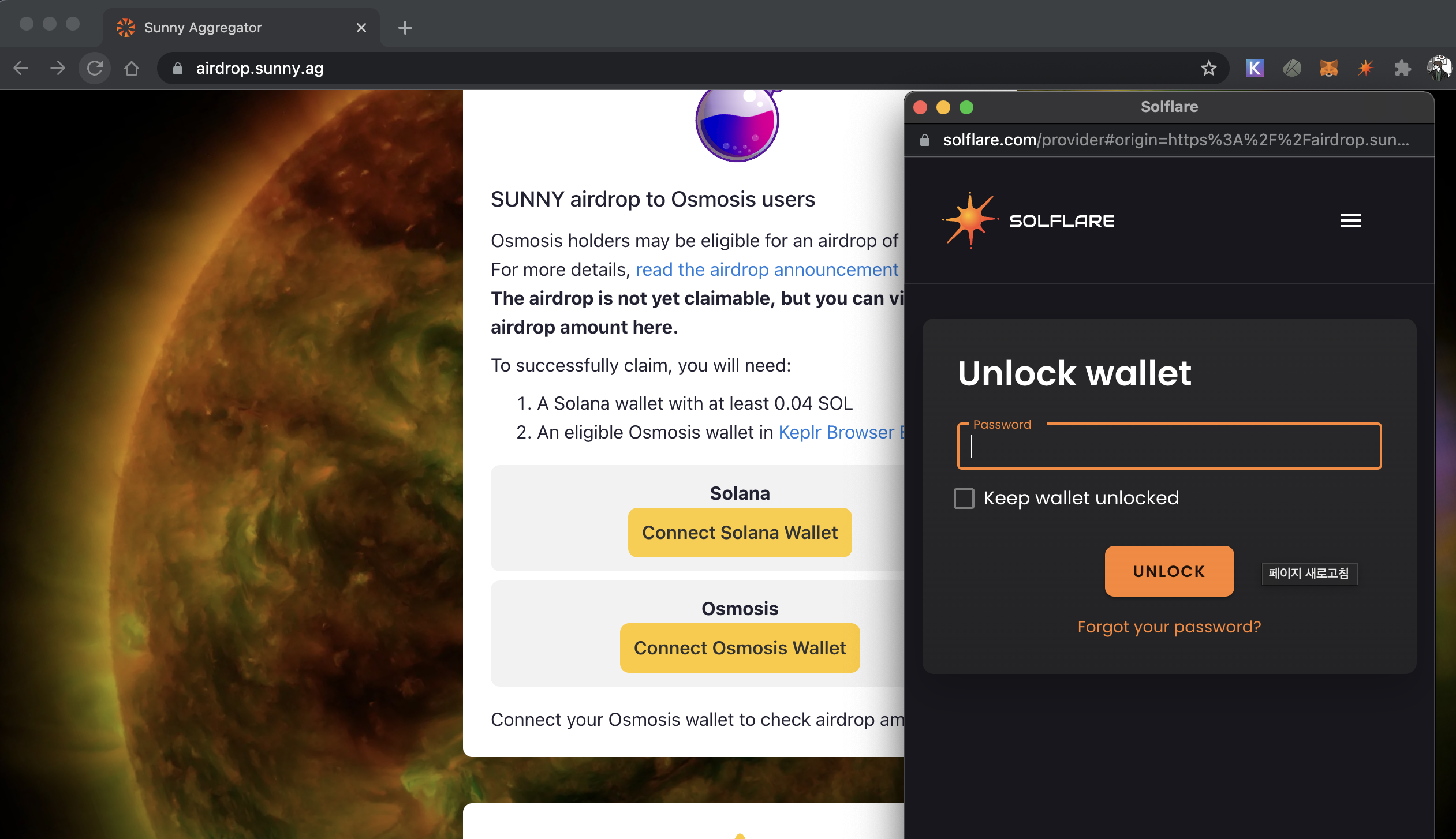 오스모시스에서 파밍하시는 분들중에 Sunny 에어드랍받으면서, 솔라나 생태계에도 관심이 있는 분들을 위해서 간략하게 받은 Sunny로 다시금 솔라나에 LP로 참여하고, Sunny 까지 파밍하는 걸 간략