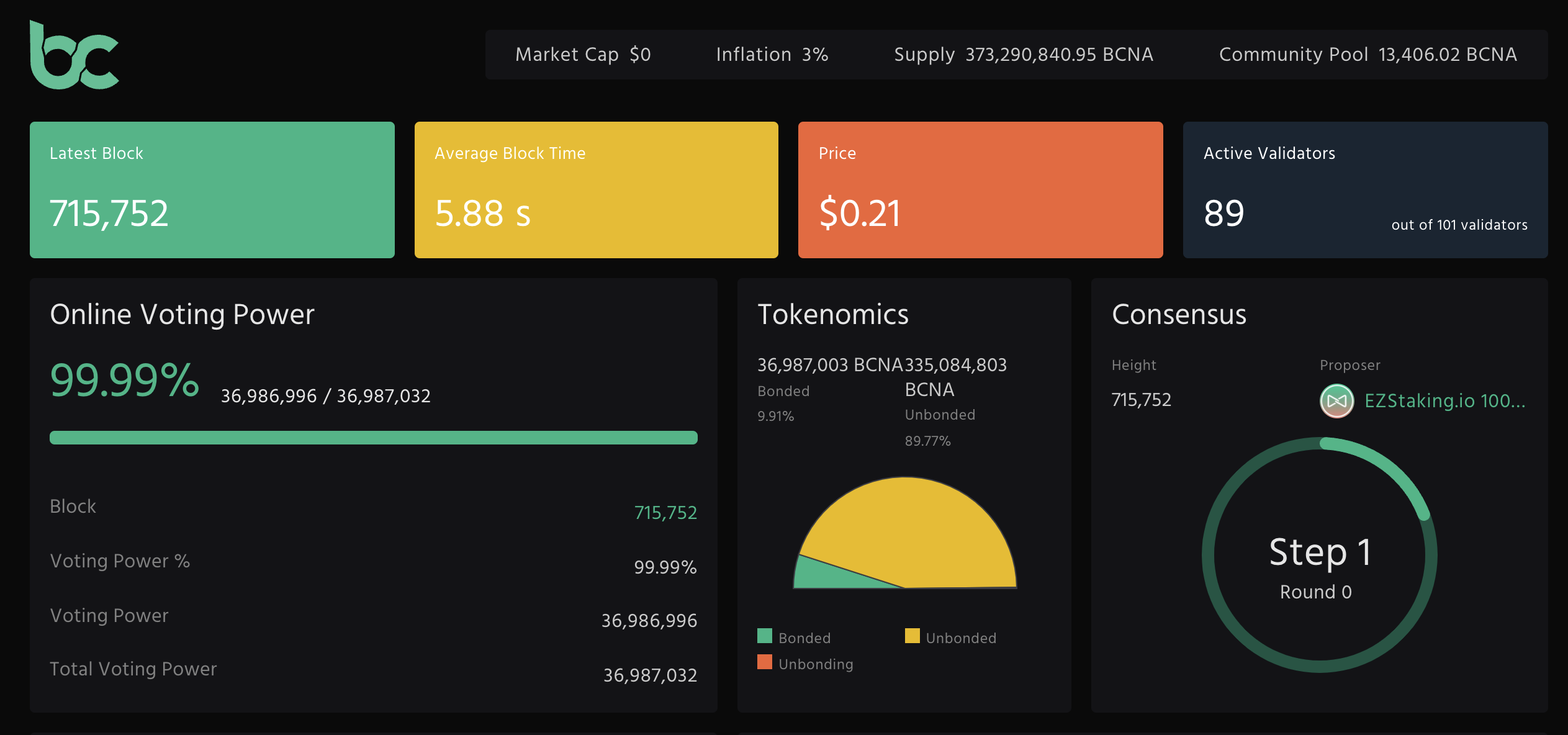 1) 전체공급량 : 373,290,840 BCNA (3억 7천개) / 인플레이션 3% [현재 $0.21 기준 78M달러정도(원화로 920억원정도)]