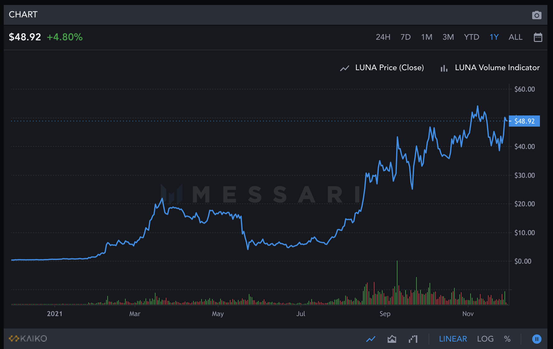 테라 UST 최근 거래량 및 볼륨 변화 (21년 11월 기준)