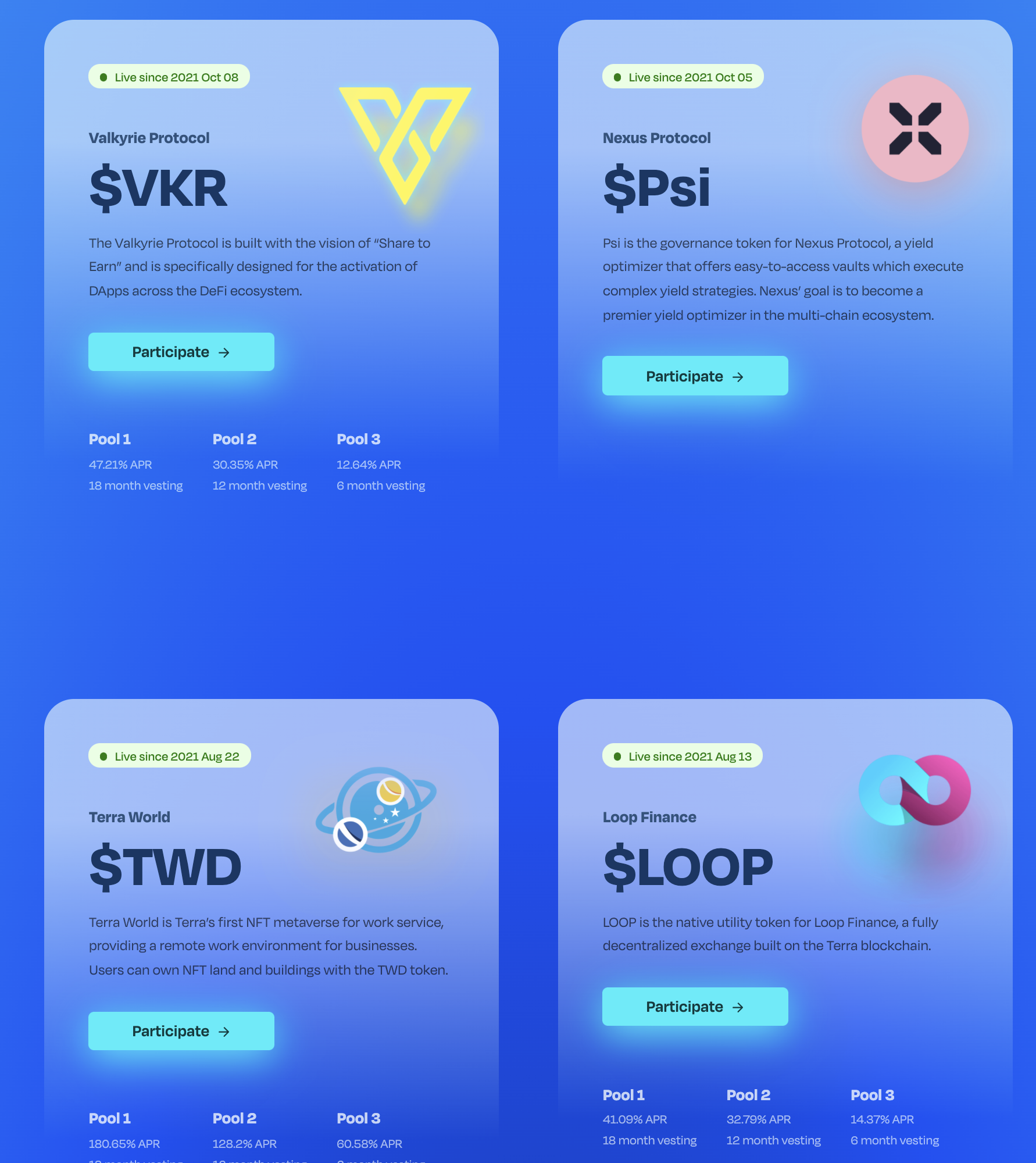 - 이름에서 알 수 있듯이 테라생태계에서 새로운 프로젝트를 하려고 하는 팀들을 지원해주는 플랫폼이다.