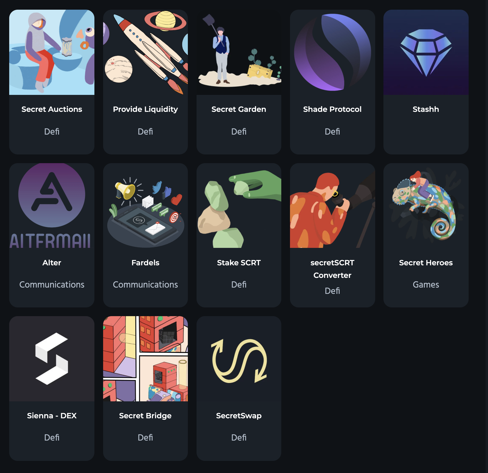 - 시크릿 옥션(경매), 시크릿 Defi등 다양한 앱들이 있다. 자세한건 아래 사이트 링크에서 확인 할 수 있다.