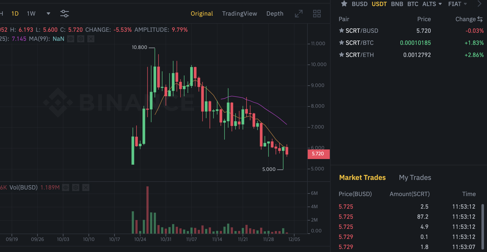 - 거래소는 바이낸스에 상장되어 있다. (BTC,BUSD,ETH 마켓)