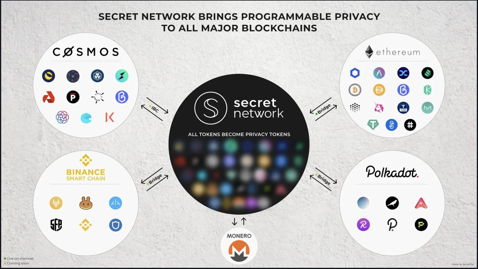 - 동일하게 바이낸스, 이더리움, 폴카닷등에서는 브릿지를 활용해서 시크릿네트워크에서 자신들의 토큰을 보안이 강화된 토큰으로 사용할 수 있다.
