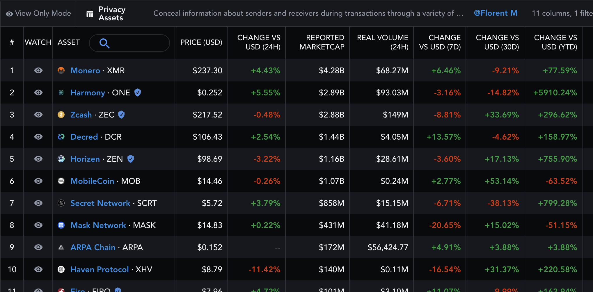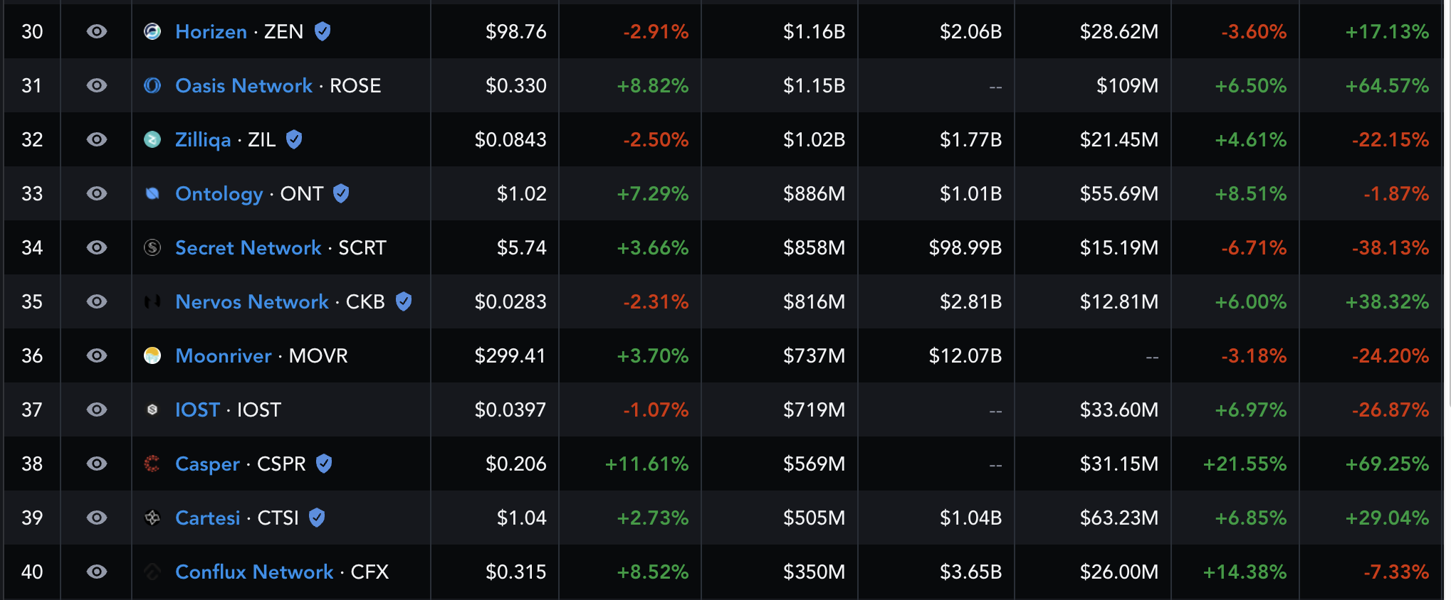 - 전체 암호화폐 시장에서 123위, 스마트컨트랙트 플랫폼에서 34위, 프라이버시 분야에서 7위다.