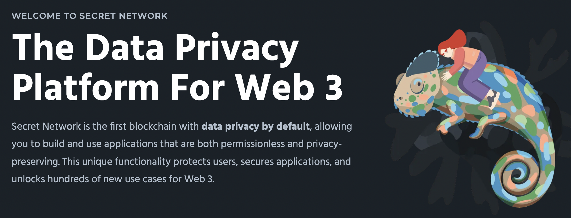 - 시크릿네트워크(SCRT)는 홈페이지 타이틀에서 알 수 있듯이, WEB3에서의 데이터 프라이버시를 위한 플랫폼이다.