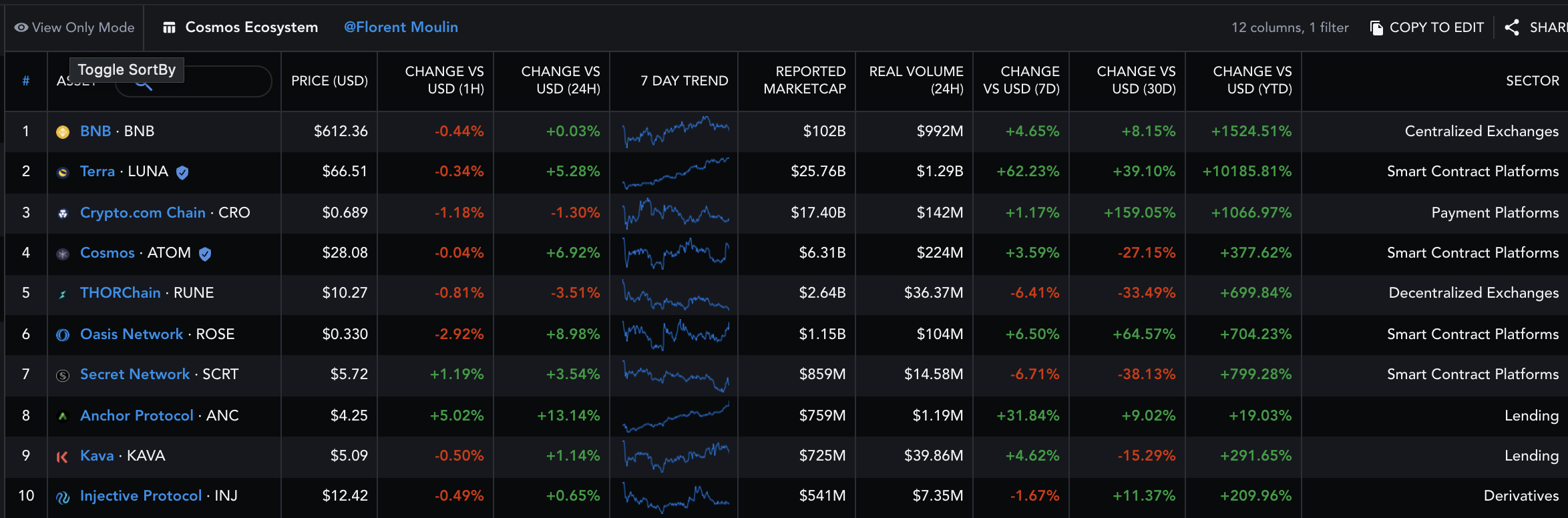 참고로 아래 순위에 모든 코스모스 생태계가 나와있지 않음. 거래소 기준이어서 Dex의 수치가 빠진것으로 파악됨.
