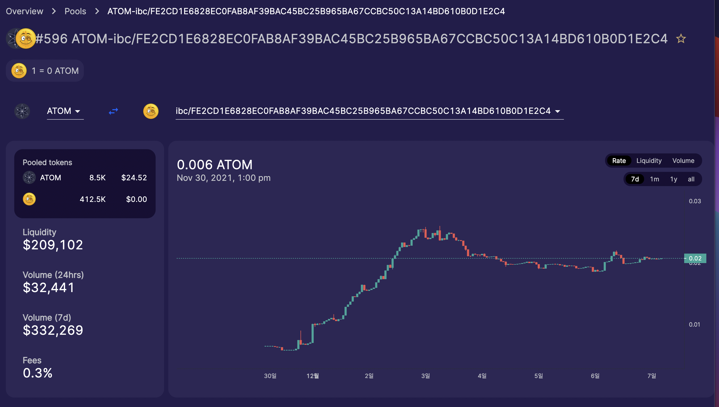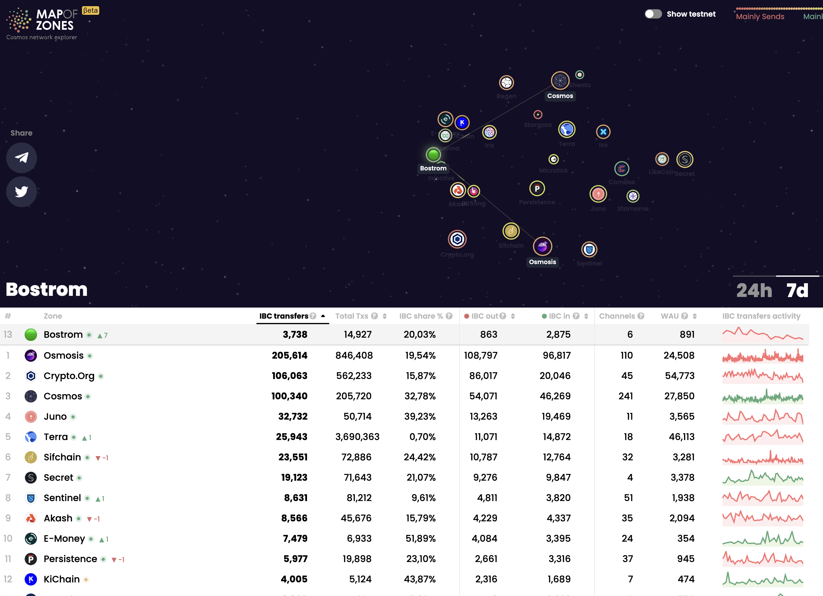 - 최근 7일 기준 전체에서 13위이며 코스모스와 오스모시스와 연결되어 있다.