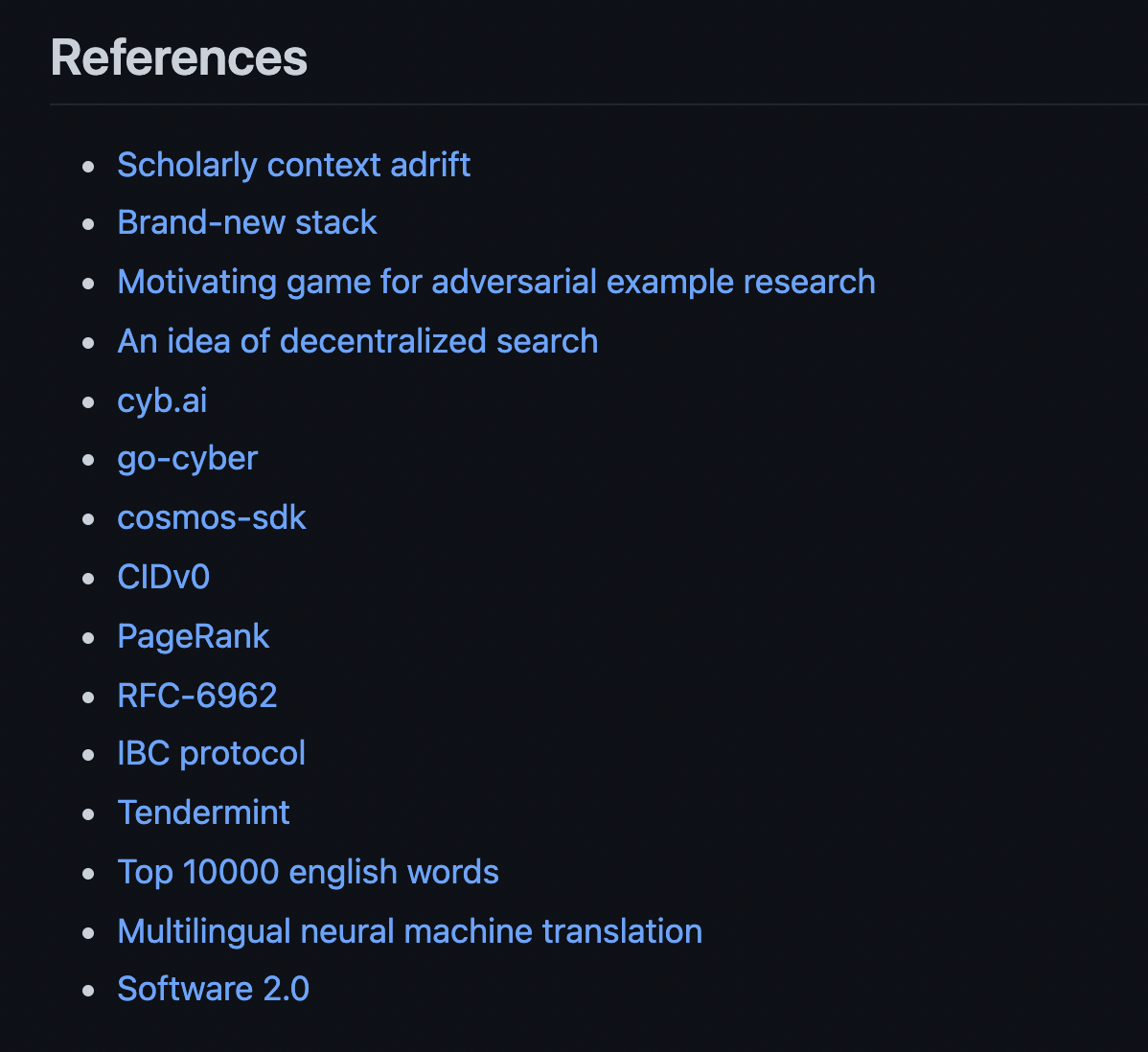 - Web3.0으로의 변화가 가속되고 있다. 이러한 web3.0에서 무엇보다도 그 지식들의 연결고리, 그리고 지식들의 상관관계를 추적하고 의미 있는 데이터를 연결하는 건 중요하다. 이러한 지점에서 Cyber가 기존 구글이 하지 못했던걸 하고자 한다는게 이 프로젝트의 핵심이다.