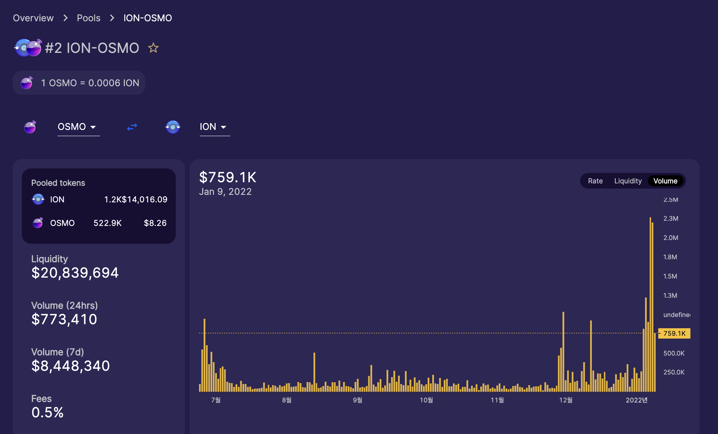 - 혹은 OSMO 수량을 더 늘릴 목적으로 ION을 보유할 수도 있다.(현재 풀이 하나밖에 없고 이 풀이 8:2라는 시점에서)
