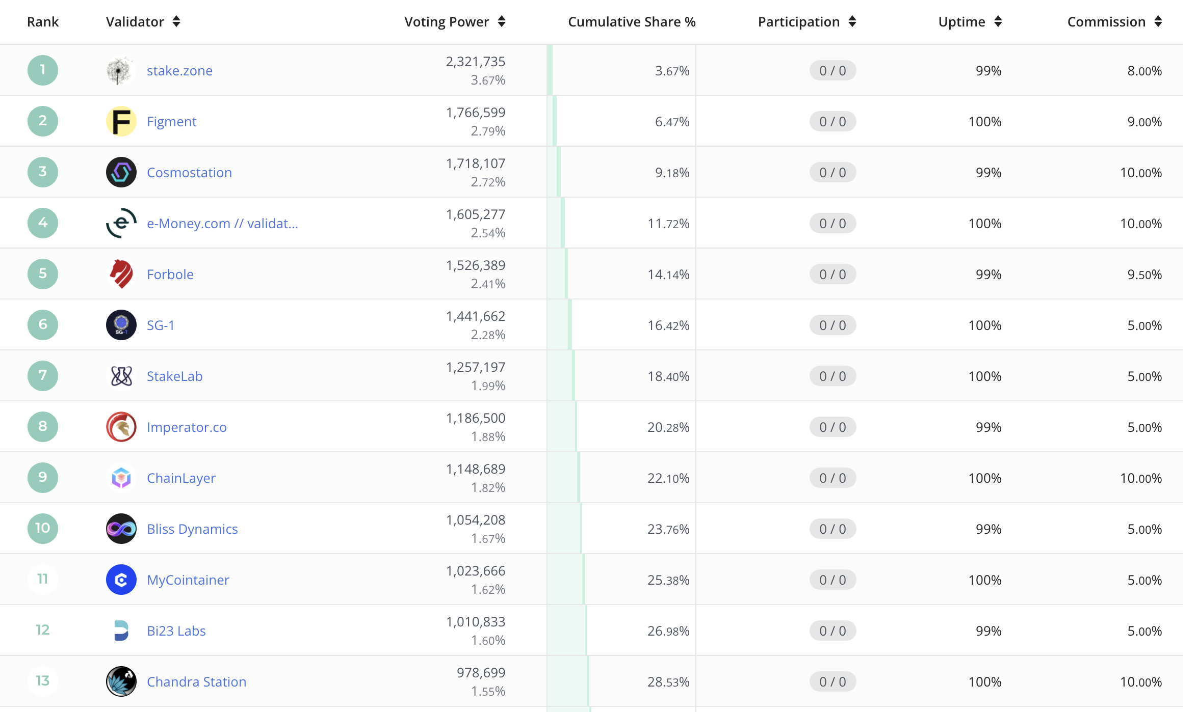 - e-money 검증인에서는 순위가 13위다.